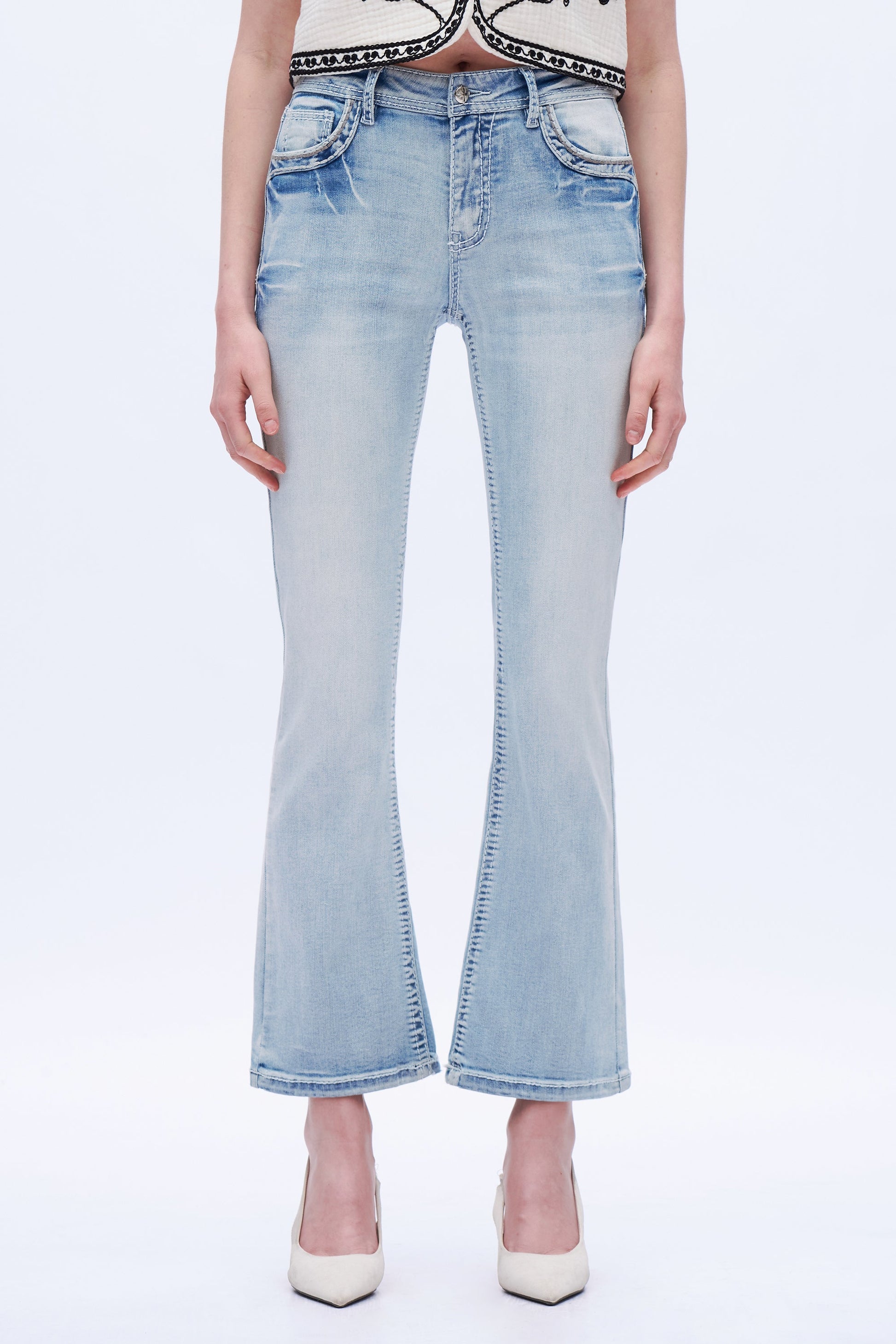Low-rise bootcut jeans with bold Western embroidery, signature pocket stitching, and stretchy, curve-sculpting, leg-lengthening fit.